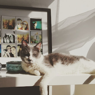 Hoje a minha Blue faz 15 anos. No corpo já idoso de gata carrega algumas mazelas, a mais grave uma insuficiência renal felizmente detectada a tempo de a tratarmos com todos os cuidados, comida especial e medicação que merece. É resmungona, gulosa, brincalhona (já foi bem mais) e tem, aos olhos de todos, o terrível defeito de só ter olhos para mim nesta vida, o que eu acho, aqui para nós, uma verdadeira delícia. É a minha companheira, sei que me entende, sei que sabe quando estou chateada ou triste, sabe quando estou disponível para lhe dar todo o mimo do mundo. Adora enroscar-se em mim no sofá e, de preferência, expulsar qualquer um dos nossos outros gatos das redondezas. Já não lhe encontro a força de antes, sinto-a por vezes mais distante, mas continua sempre atenta a mim. Sei também que não se seguem mais quinze anos e isso dói-me com a certeza de que ela se encaminha para a última etapa da sua vida. E tudo o que eu quero é que ela a viva com serenidade e a sentir o amor que nutro por ela. Porque ela é a minha Gata, como eu sou a sua humana.